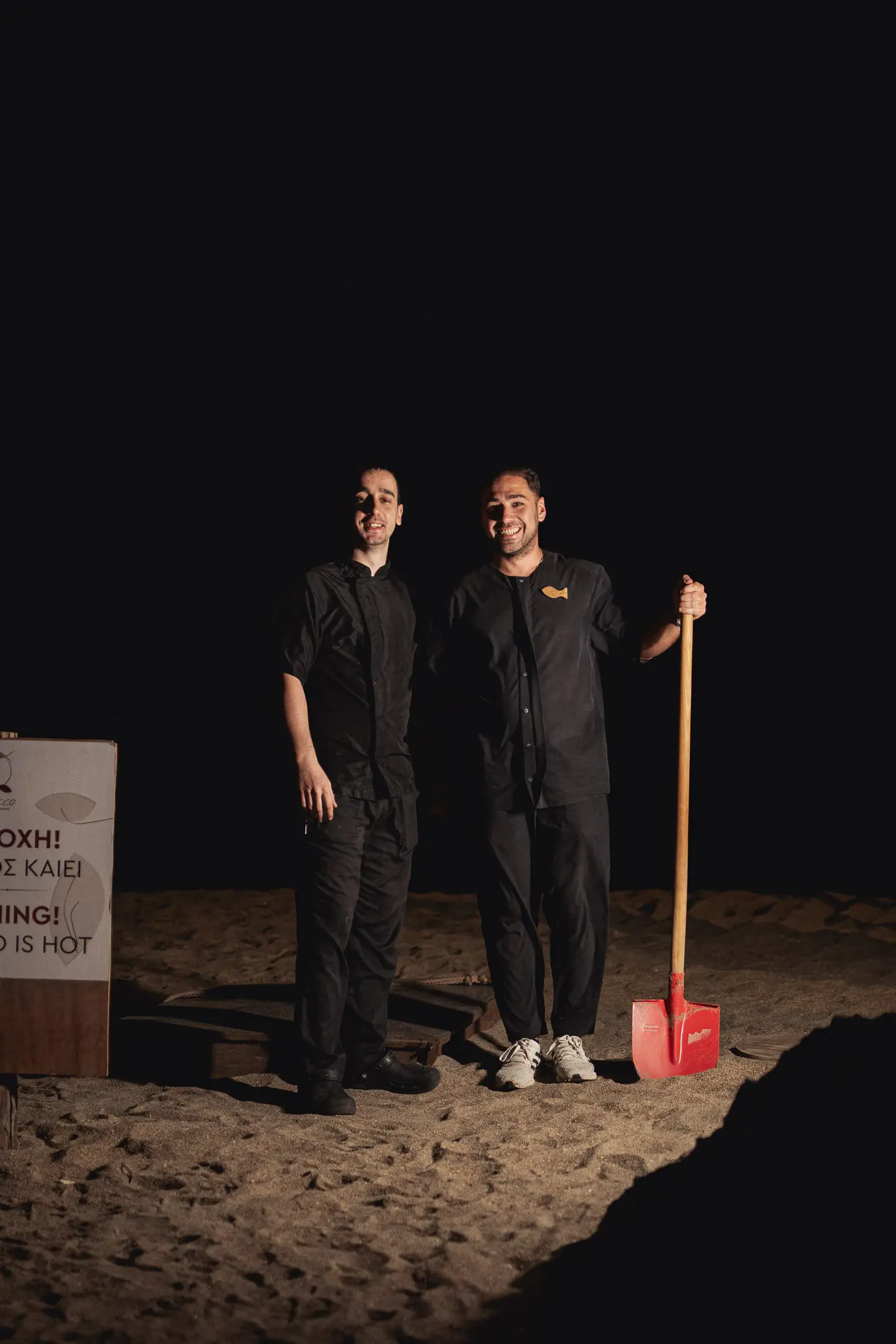Sirocco’s cuisine is deeply connected to the island. Cooking in volcanic sand is not a performance. It is an elemental technique rooted in the natural energy of Milos. Ingredients are gently buried in the hot sand and cooked slowly, absorbing heat, time and the character of the earth itself. The result is food with depth, purity and a sense of place that cannot be replicated elsewhere.